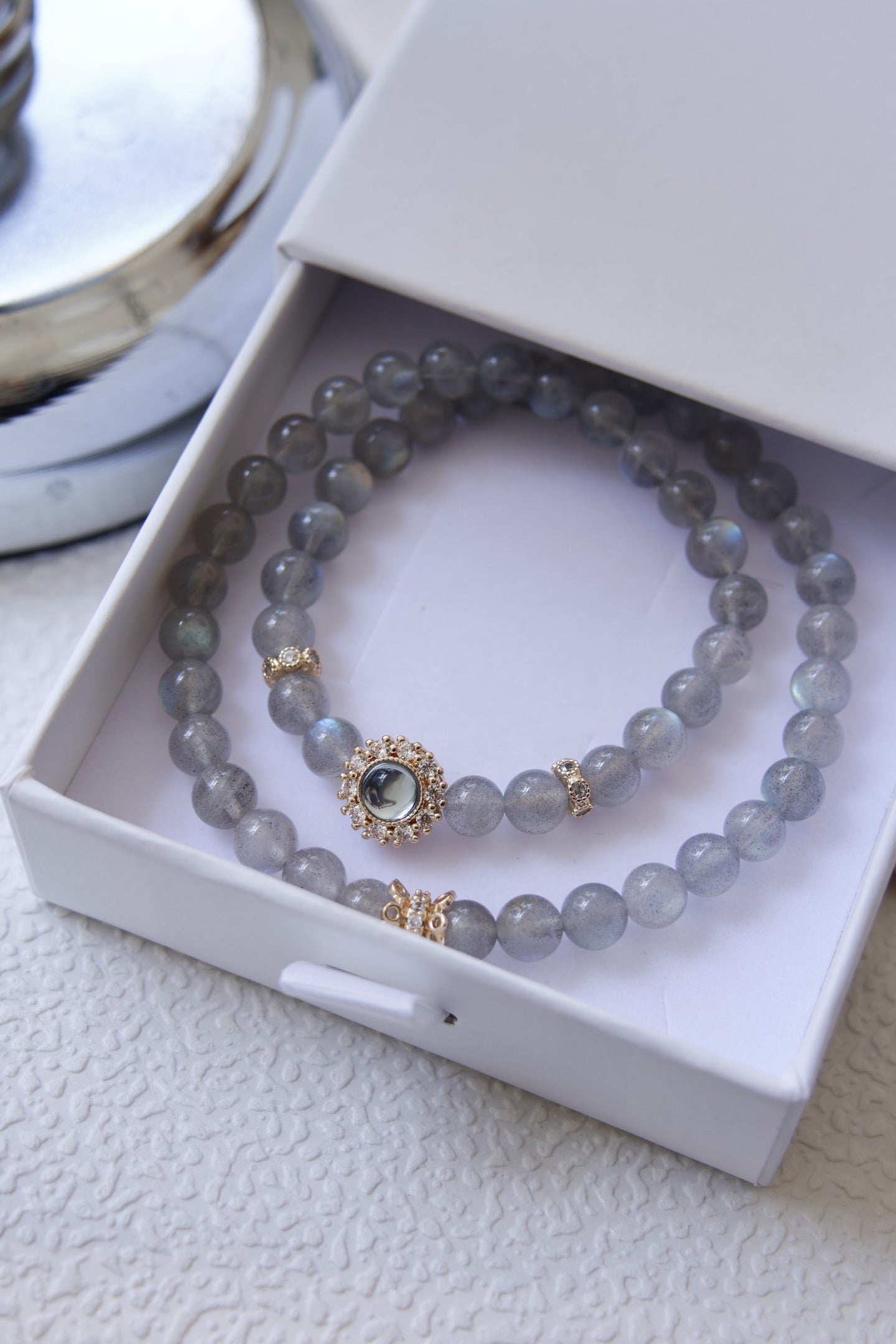 [Gray-Blue Moonlight] Women’s Bead Shimmers with Iridescent Light, Like Tiny Celestial Spheres