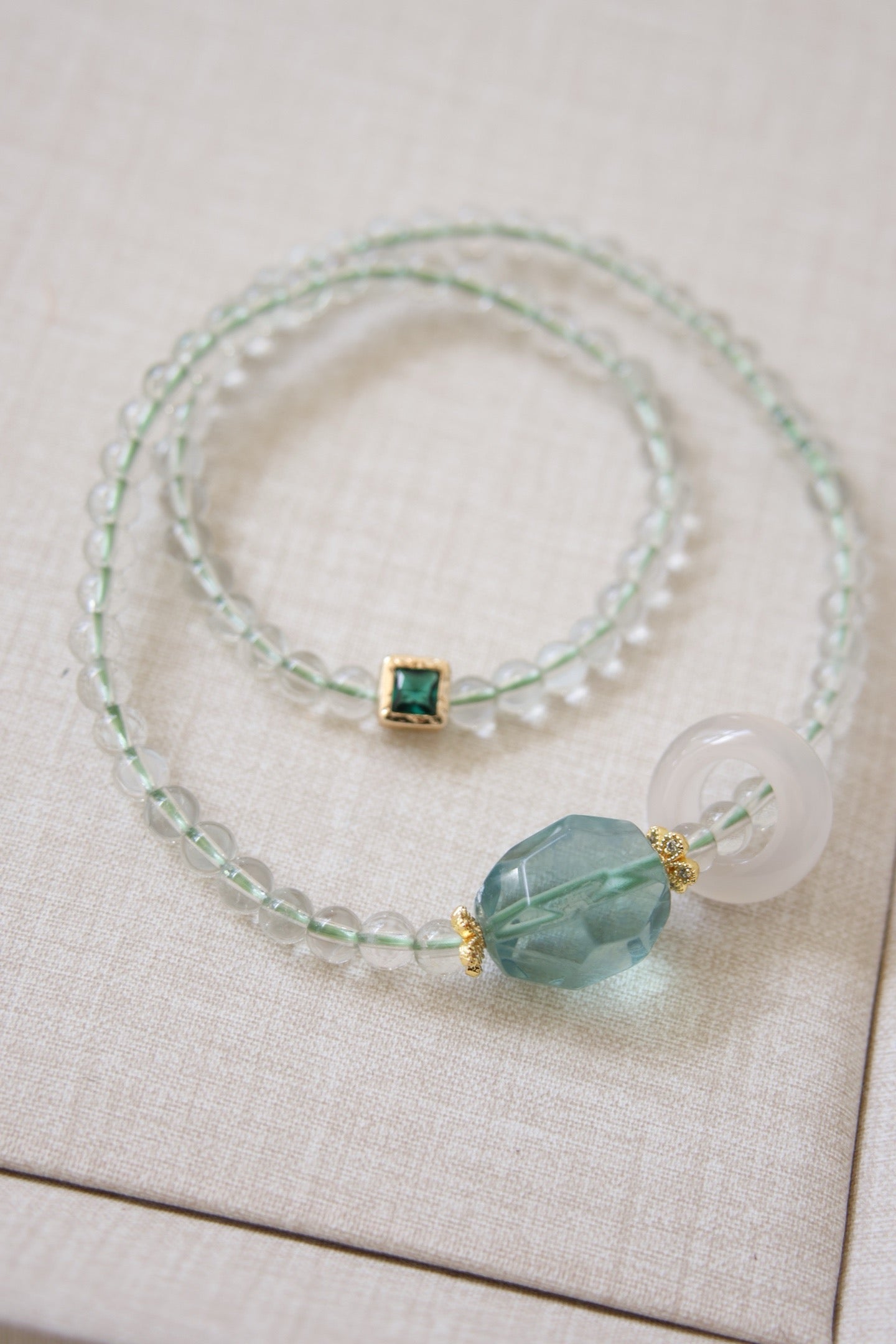 Crafted from natural fluorite crystals, this bracelet radiates a serene and sophisticated charm.